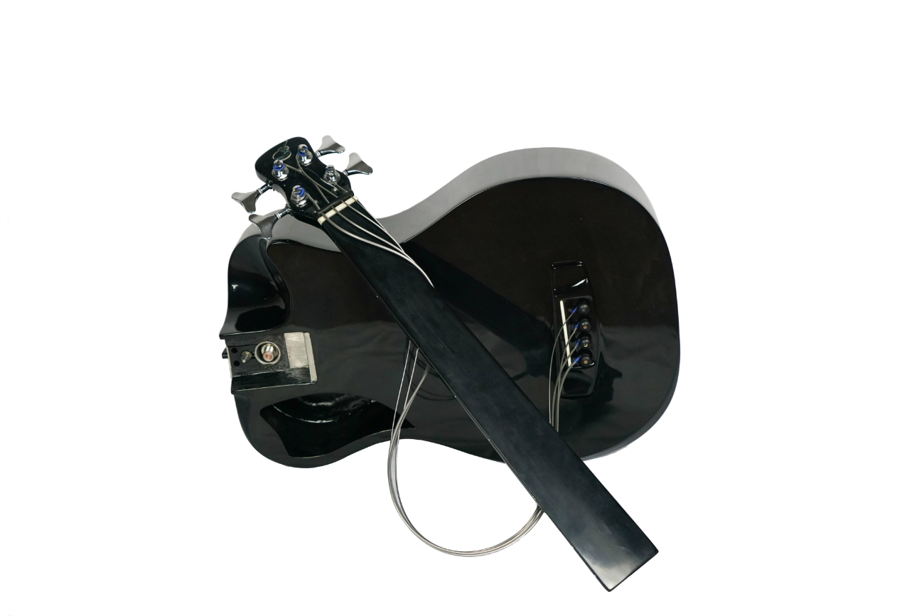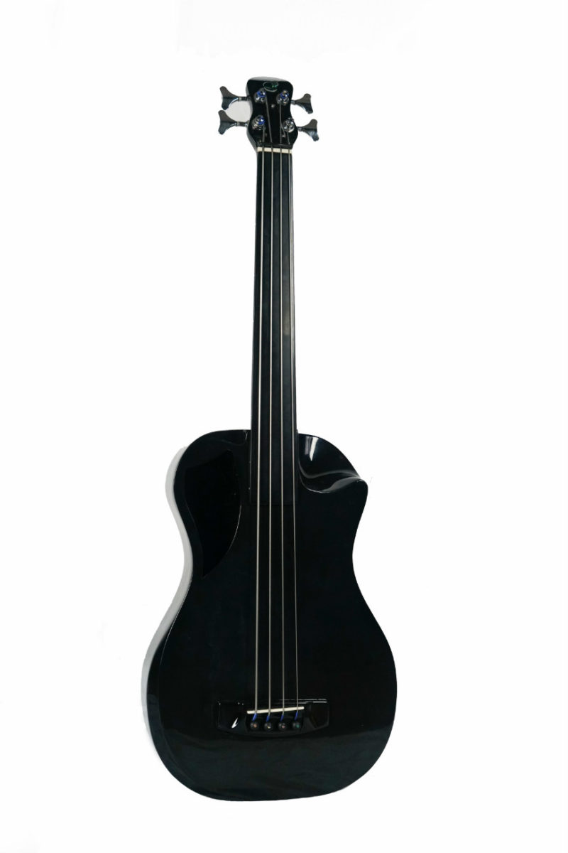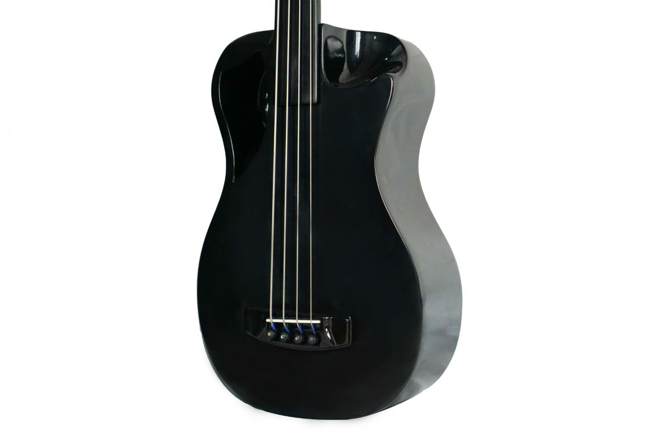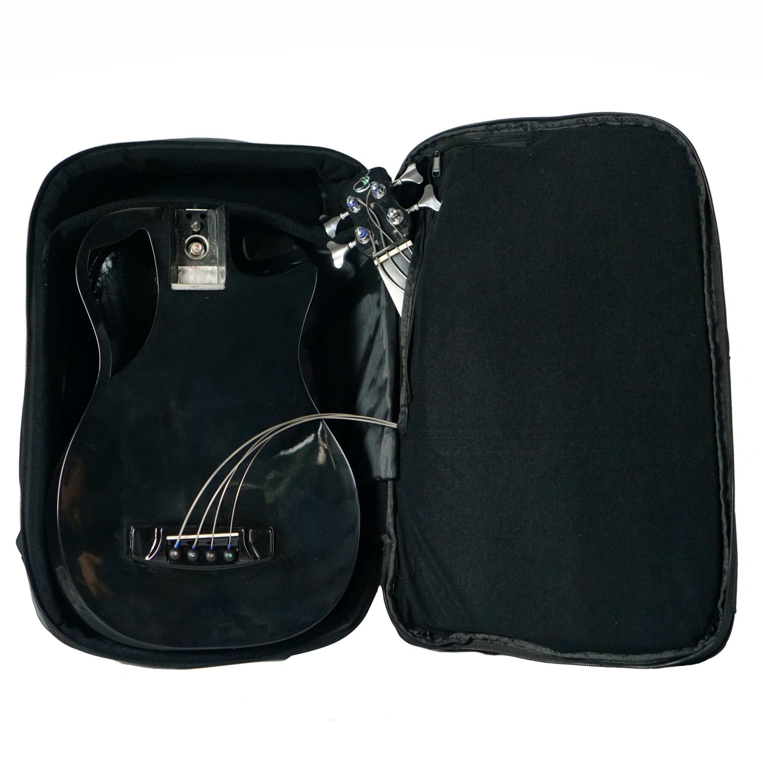 The black gloss fretless carbon fiber overhead collapsible acoustic travel bass delivers the tone of an upright bass and the volume of a full-size acoustic bass, yet collapses to carry-on size of 22*14*9 inches! It assembles in 20 seconds with our patented detachable neck system, and our patented soundboard technology and all-carbon construction create a durable instrument with massive tone. Round wound PB strings, a 27 inch scale, best-in-class components, and a wedged ergonomic design make this the most enjoyable acoustic bass you’ll ever play! Tri-piezo pickup and a full-featured TSA compliant carry-on backpack included. (If viewing product category list, click on product image on the left to view full specs, otherwise scroll down for specs and media.)