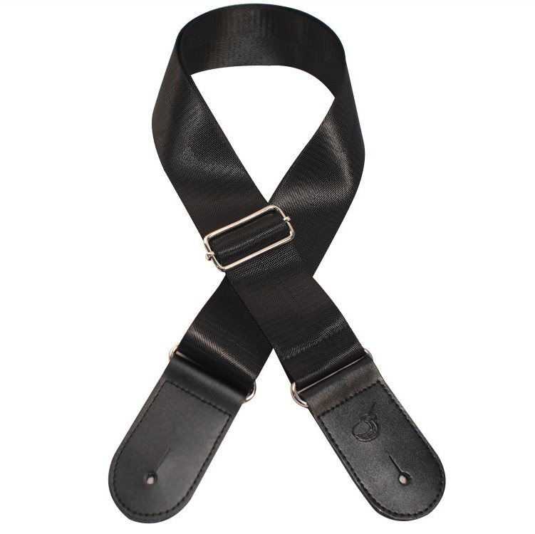 Premium Nylon guitar strap featuring genuine leather ends and stainless steel buckle