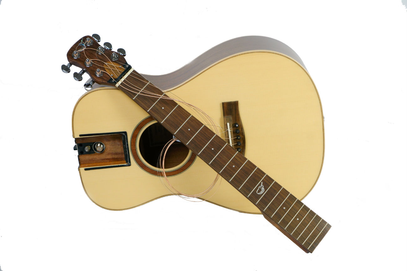 Both guitars feature a wedge design which means it has a wide base that tapers toward the top. According to Journey Instruments, this feature helps increase guitar volumeā¦Iāve never manufactured a guitar before, so I can only imagine how difficult it must be to engineer a guitar that can collapse into two pieces for storage. The most popular collapsible guitar I know of is hinged so that the neck and the body are always connected, even if it folded down… For those who need a guitar that travels well but still sounds like a full-sized guitar, I highly recommend you give the Overhead a look. Itās not a beginner guitar and it is a bit of an investment, but if it fits what you need it will be worth every penny.