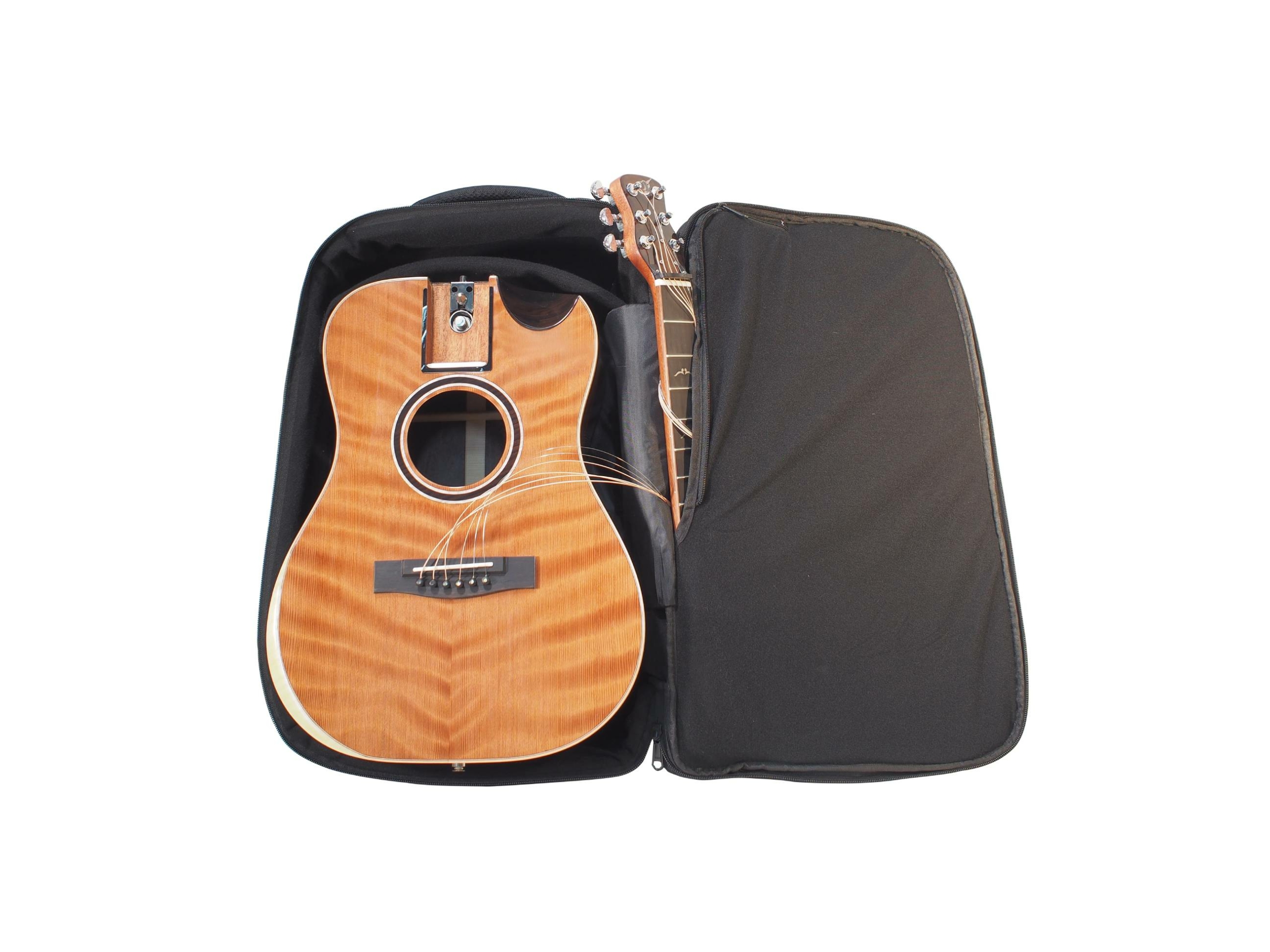 - After packing in its travel backpack the Overhead travel guitar can be carried-on to most major airlines, easily fitting in the overhead bin compartment.