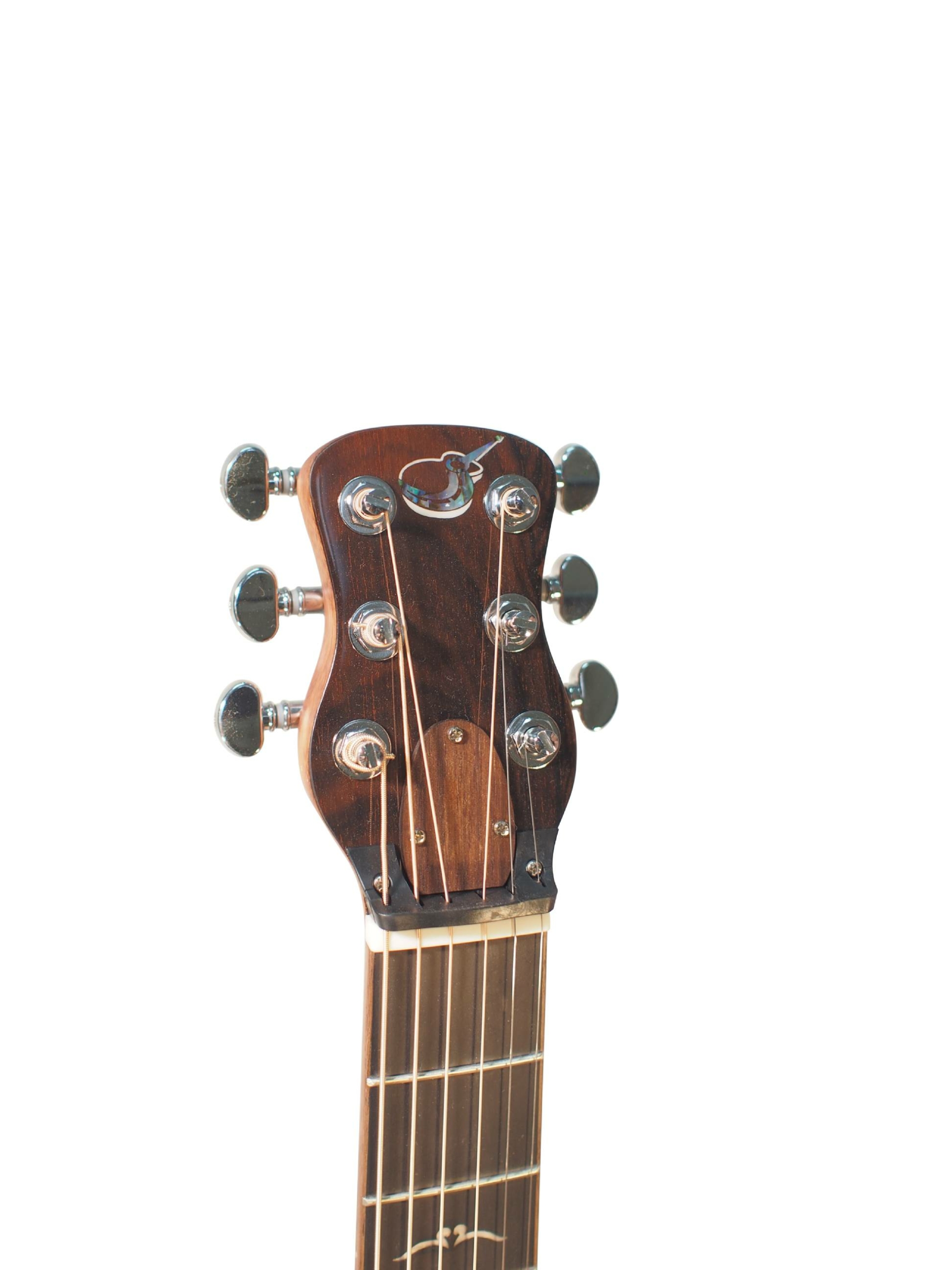 The guitar itself is beautifully built with solid Sitka Spruce top and rosewood back and sides, Bone nut and saddle, built in passive pickup, Grover mini tuners, mahogany neck that comes off… Yeah you heard it right. If you don’t believe me now would be time to check out the video I made with the guitar (at the top of this post). You also hear the sound quality of the instrument.
