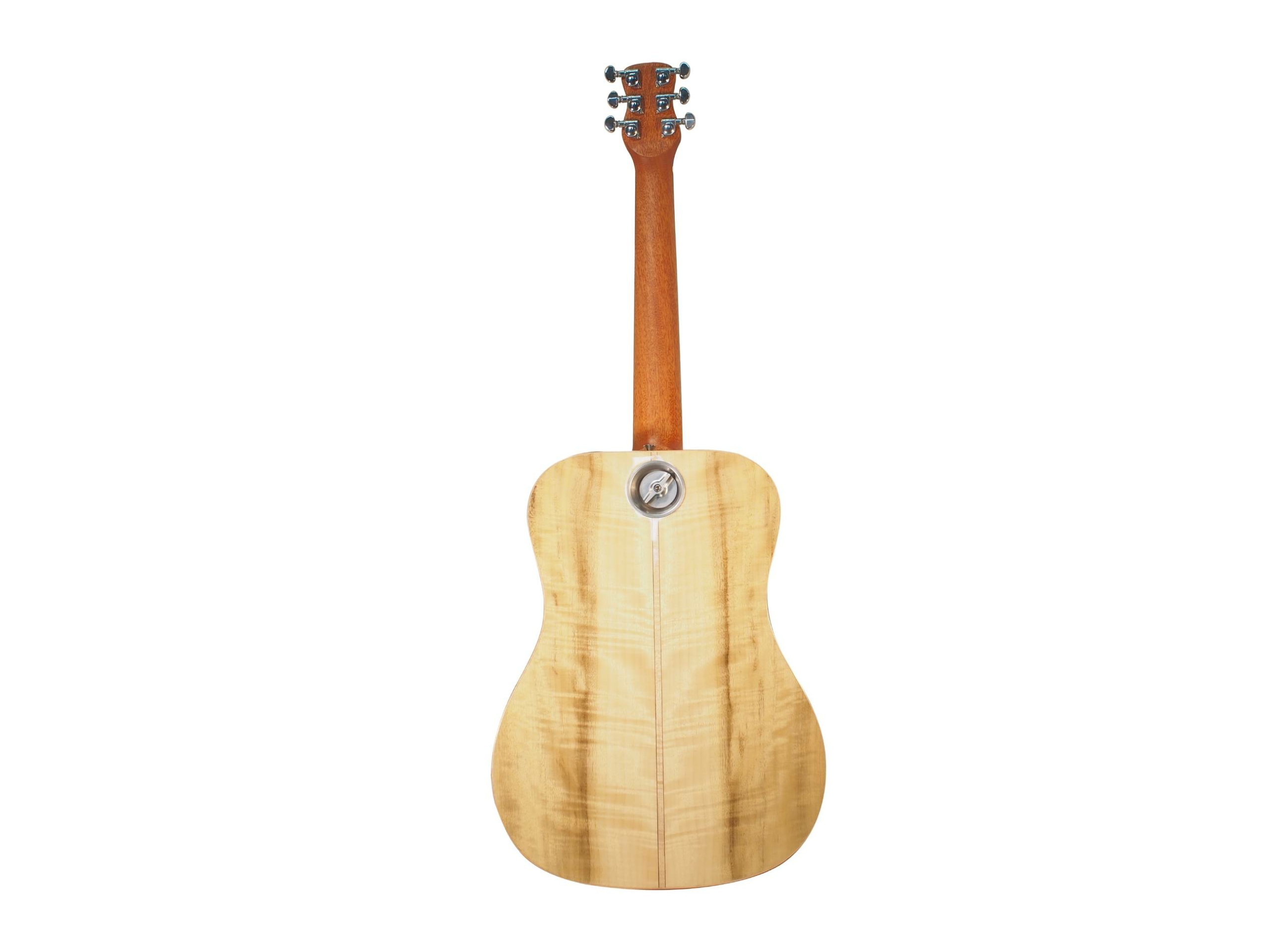 $429.99The PJ410N Puddle Jumper features a solid sitka top with layered African mahogany sides/back and collapses to carry-on size of 18.5*12.5*7 inches! It assembles in 20 seconds with our patented detachable neck system that’s guaranteed for life. A shorter 23 inch scale, a versatile 1 11/16 nut width quality components make this the most portable and fun guitar you’ll ever play! Quality carry-on backpack included – and it even fits under most airline seats! CLICK HERE to compare with our other wood models.