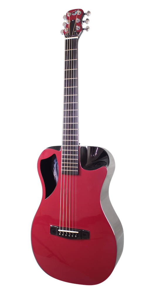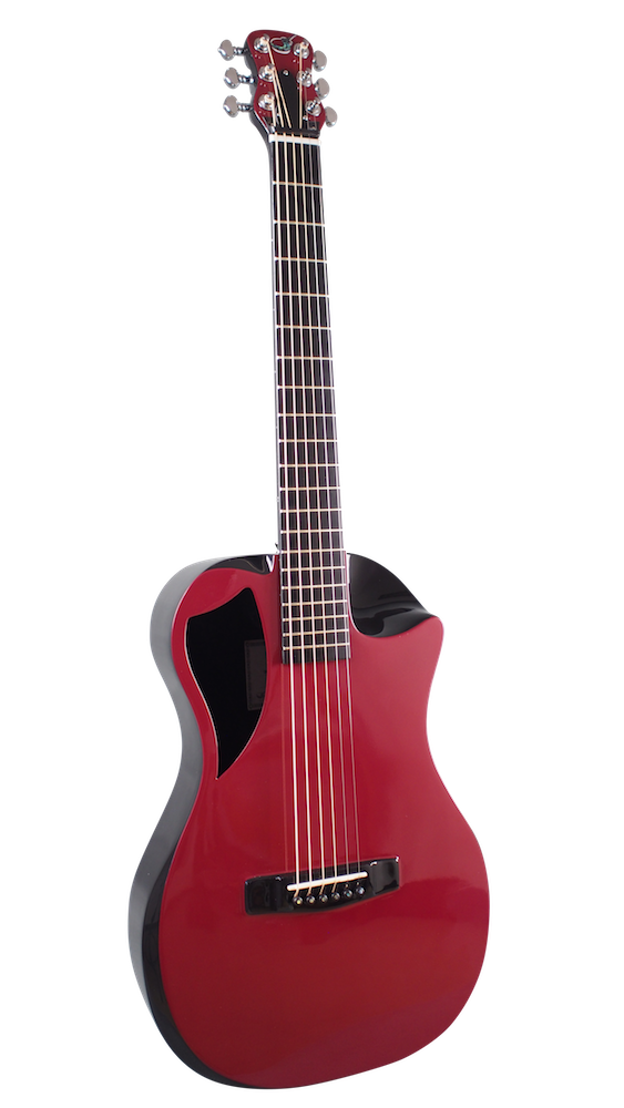 The burgundy gloss carbon fiber travel guitar collapses to carry-on size of 22*14*9 inches! It assembles in 20 seconds with our patented detachable neck system, and our patented soundboard technology and all-carbon construction create a durable instrument with massive tone. A full 24.5 inch scale, a versatile 1 3/4 nut width, best-in-class components, and a wedged ergonomic design make this the most enjoyable guitar you’ll ever play! Tri-piezo pickup and a full-featured TSA compliant carry-on backpack included.(If viewing product category list, click on product image on the left to view full specs, otherwise scroll down for specs and media.)