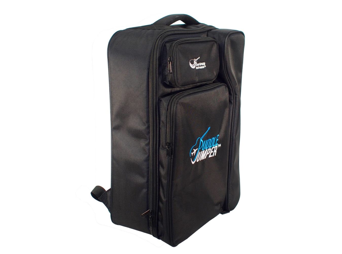 - After packing in its travel backpack the Puddle Jumper travel guitar can be carried-on to most major airlines, easily fitting in either the overhead bin or under the seat in front of you.