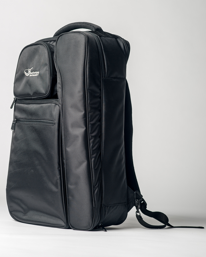 The first thing I noticed when I pulled the guitar out of the box and backpack is that this is truly a compact and lightweight guitar! Journey uses an ingeniously designed system that allows the neck to easily be completely removed from the body, and then it can be packed up into the custom backpack. The backpack was designed to fit in all the major airlines overhead bin compartments. Attaching the neck back onto the body is an easy and quick process. There are lips on the body and neck that mate up, which allows the neck to be rolled into position. And then as you move the neck into position on the body it is locked/clicked into place. At this point the neck is held into position and then you can use the knob on the back of the body to screw the neck into it’s final position. The neck and body securely become one. The whole system is awesome, it’s so easy to install/uninstall the neck, and the hardware is all heavy duty and high quality stainless steel so I don’t think durability will ever be an issue. Compared to the Voyage-Air system, I definitely prefer Journey’s design.